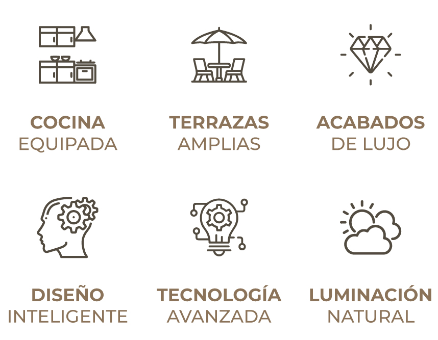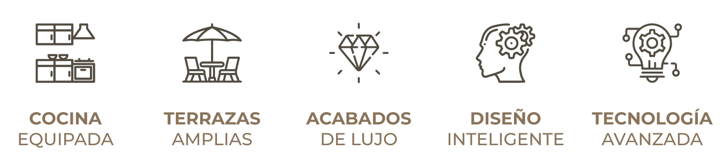 Incluyen cocinas integradas, espacios de almacenamiento, terrazas amplias y habitaciones lock-off, perfectas para visitas o renta vacacional.