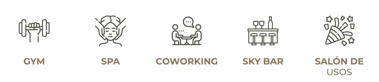Disfruta de una variedad de amenidades diseñadas para tu bienestar y entretenimiento, como lo son un gimnasio completamente equipado, un spa relajante, un coworking moderno y un sky bar con vistas impresionantes.