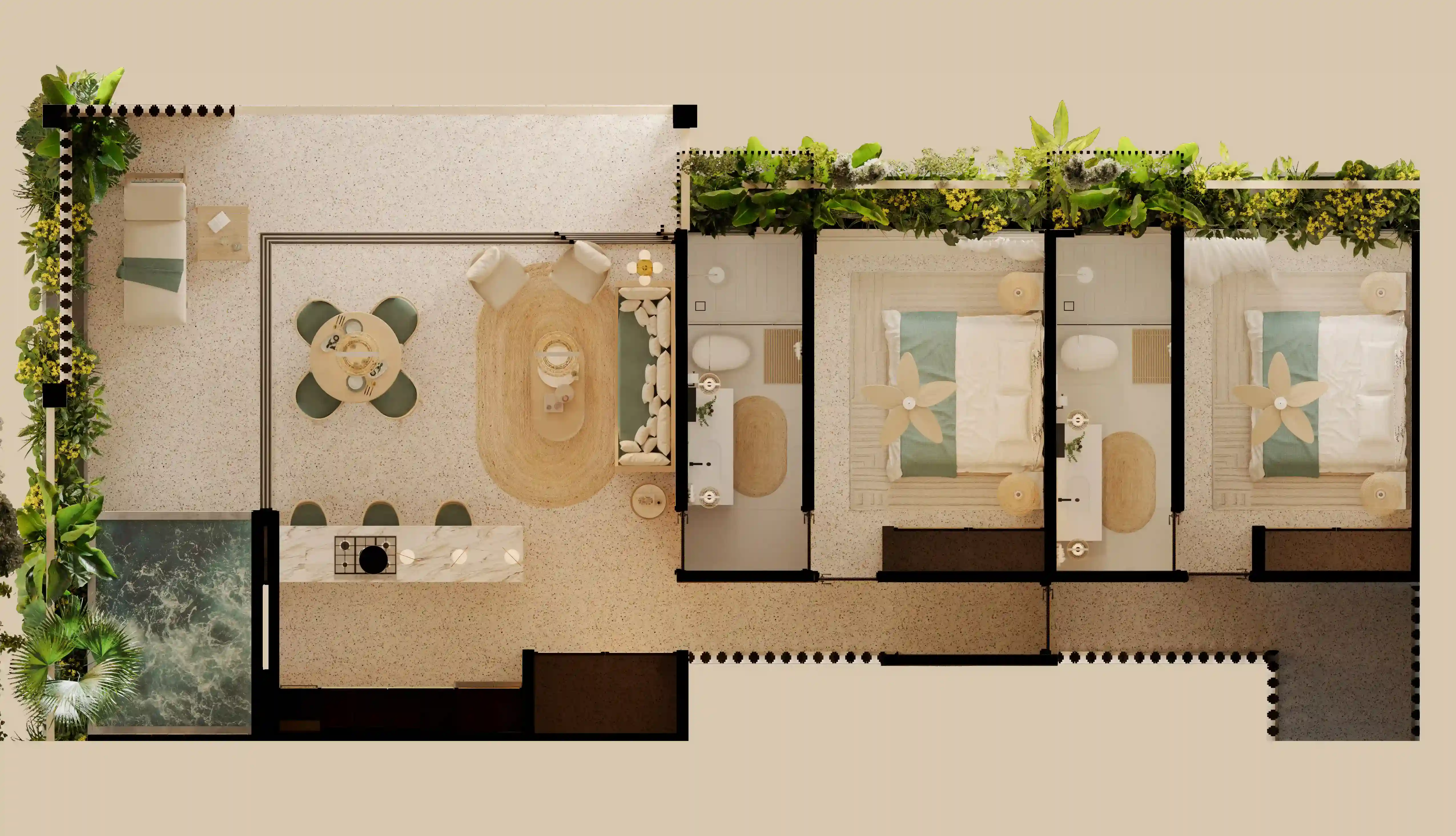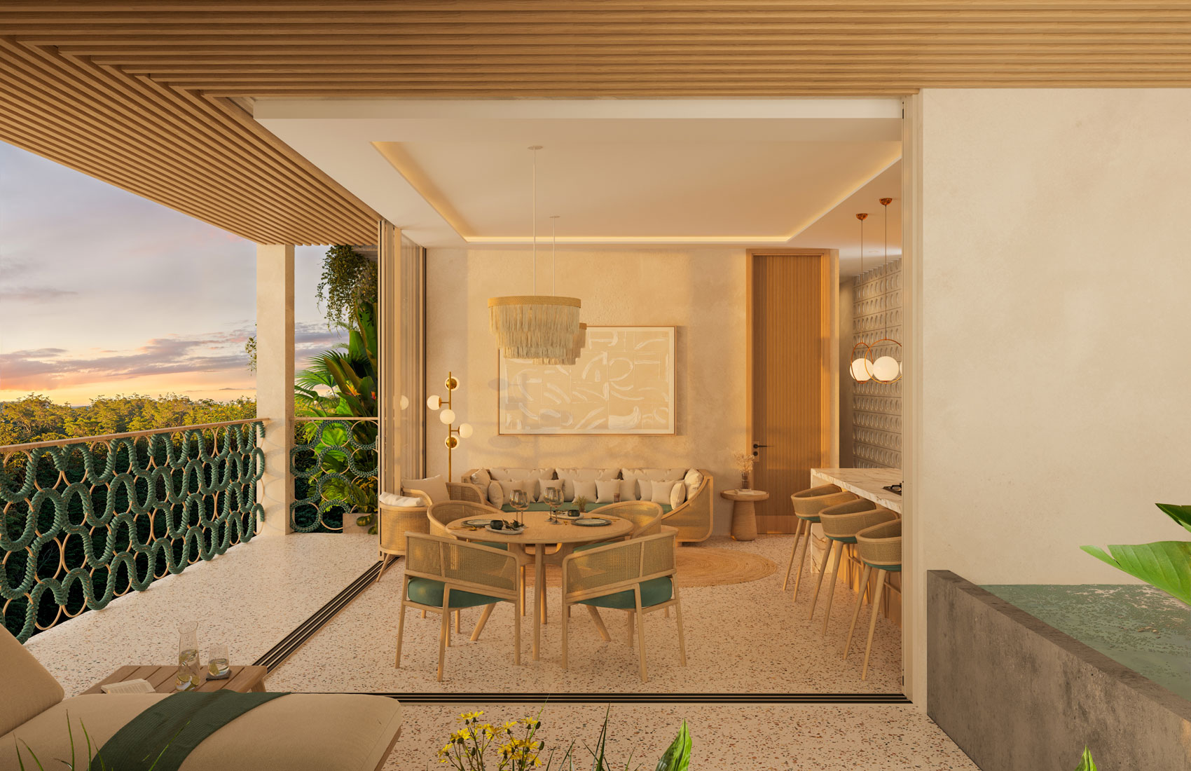 En Bokobá, cada unidad ha sido cuidadosamente diseñada para maximizar el uso del espacio, la luz natural y la privacidad, asegurando que cada rincón de tu nuevo hogar se sienta como un refugio personal.