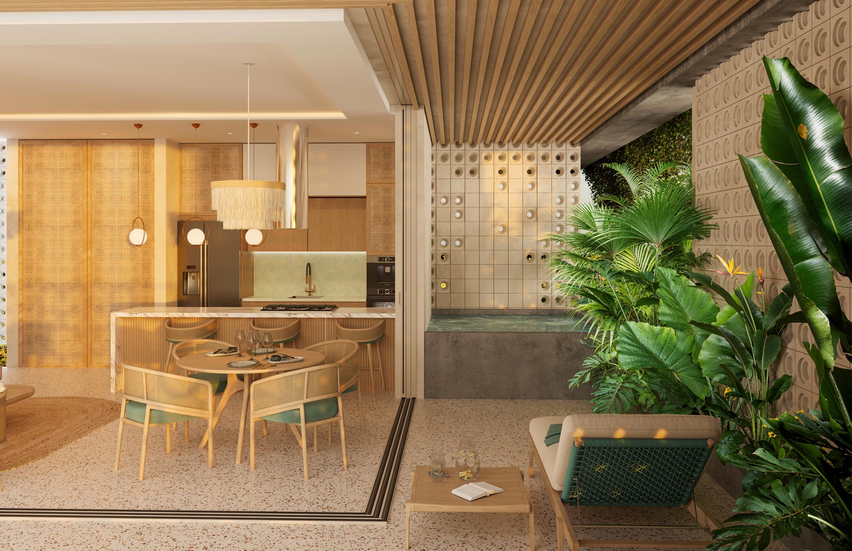 Cada detalle refleja calidad con acabados de lujo como pisos de terrazo y muros de chukum.